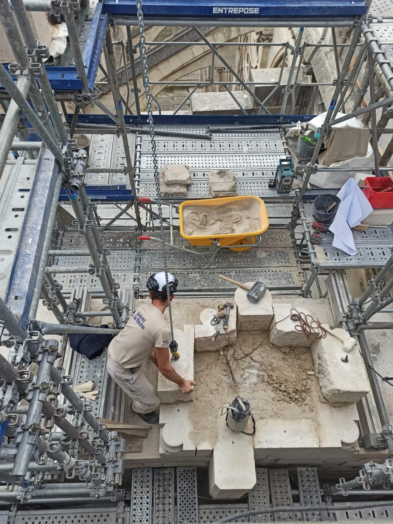 130 artisans et jeunes en formation participent à ce chantier-école inédit, qui allie excellence des métiers et technologies de pointe au service d’un patrimoine vivant. Des dizaines d’apprentis sont formés pour créer une nouvelle génération de tailleurs capables de restaurer les monuments dans les règles de l’art.